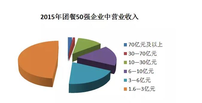 此外,报告指出,团餐企业营收能力差距较大,出现强者愈强趋势。2015年团餐50强企业年营业收入在70亿元及以上的仅占2%,10亿-30亿元占12%,6亿-10亿元占18%,3亿-6亿元占20%。有半数企业年营业收入集中在1.6亿-3亿元区间,30亿-70亿元区间出现较大真空区,未来会有更多企业发展至这一区间。
