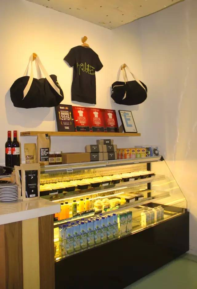 在北京,Tribe餐厅则直接把店铺开到了健身房。经过3个月准备时间,它于2015年12月进驻了三里屯的一所健身房,这里原本是健身房预留的餐饮空间,但他们无暇分心管理,于是选择和餐厅直接合作。这里以外卖为主,一半是吧台,一半是展示、存放即食餐点的冰柜。