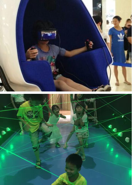 “小螺号”设计了多个亲子互动区域,有绘本阅览区、乐高积木区、欢乐小舞台、亲子手工区等。无论孩子是活泼还是文静,都能在餐厅找到满意的娱乐区域。而在餐厅多个互动项目中,最受欢迎的娱乐区域当属9D虚拟现实体验仓和“穿越红外线”。