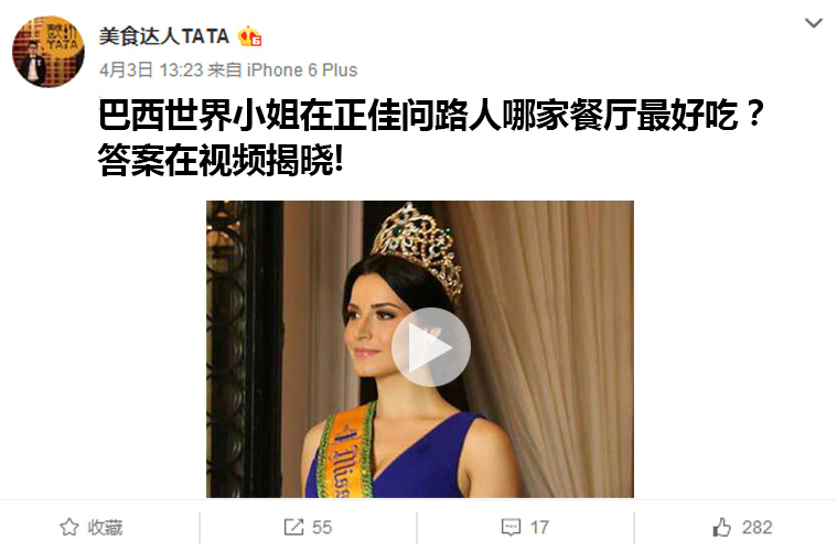 通过世界小姐商场采访路人得到的视频,后期进行线上推广,