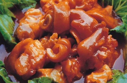猪蹄,又叫猪脚、猪手,前蹄为猪手,后蹄为猪脚。含有丰富的胶原蛋白质,脂肪含量也比肥肉低,近年在对老年人衰老原因的研究中发现,人体中胶原蛋白质缺乏,是人衰老的一个重要因素。它能防治皮肤干瘪起皱、增强皮肤弹性和韧性,对延缓衰老和促进儿童生长发育都具有物殊意义。为此,人们把猪蹄称为“美容食品”和“类似于熊掌的美味佳肴”。