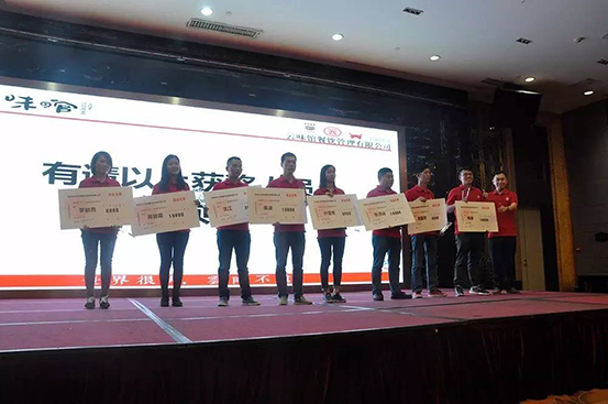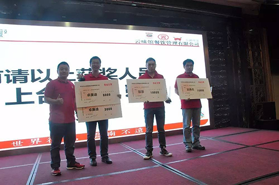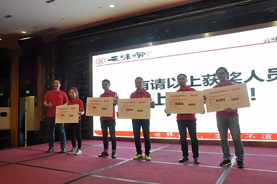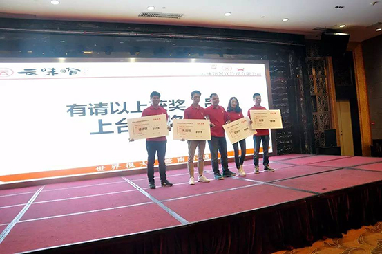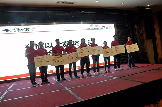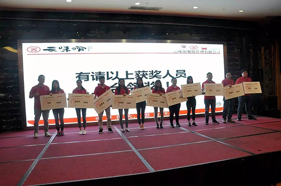 据不知道可不可靠大道消息,今年云味馆除却人人有份的年终奖以外,本周年会现场还要颁发近五十万人民币、九十余项年度优秀现金奖,同时在职满五年的员工们每人将获得九九纯金金牌一枚!自律诚信,激情创新,快乐成长,感恩分享!别问我是谁,以人民的名义!
