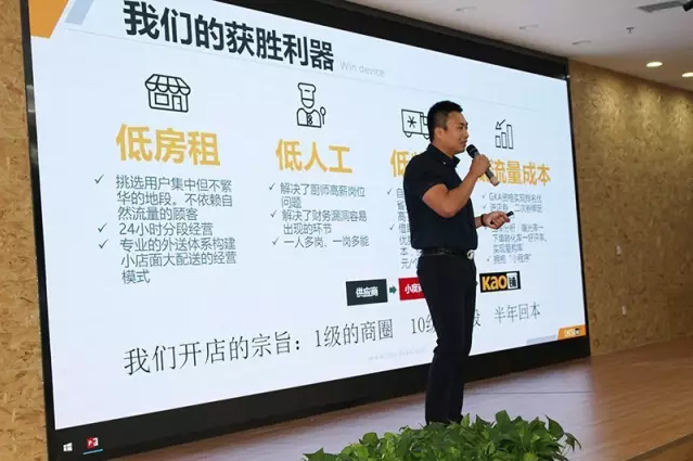 大多数餐企常常会出现外卖小哥找不到路,还有因点餐时间差往返来回同一区域等问题,从而形成高额的配送费,而Kao铺却能做到5分钟全城配送,那么Kao铺是如何做到的呢?Kao铺聘请的是区域掌柜承包固定楼宇,从Kao铺取出整车午餐,然后作为掌柜的他们售卖给他们所在的楼宇,他们来自于这座楼宇的送水工、物流等人员,熟知楼层情况和客户消费情况,一层一层配送不走回头路,原来需要7元的配送投入,现在只需要3元,节省了时间和人力成本。