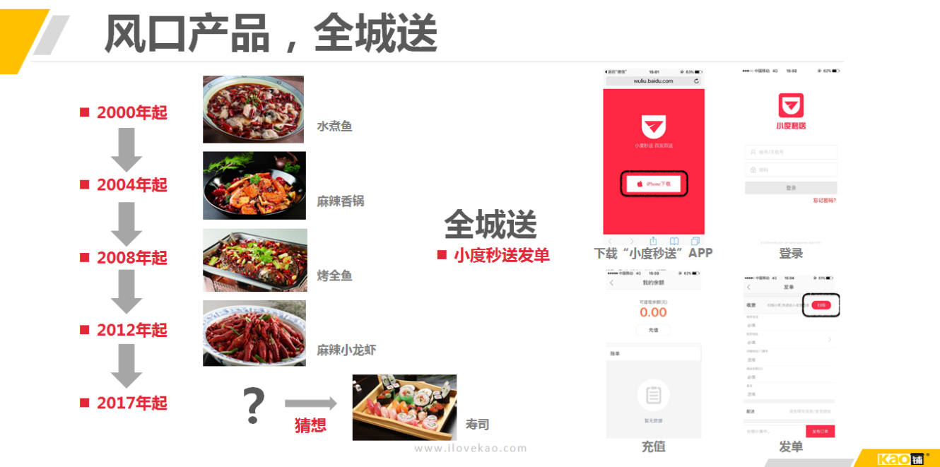 很多人说做餐饮我们应该学习日本的市场,但是在日本单品市场爆发的趋势下,带来的是餐饮市场价格竞争,并不利于餐饮行业的发展,因此做好餐饮做好品类是关键。2017年前Kao铺主打是烤肉饭,而今天,Kao铺主做的是风口产品,如:寿司、小龙虾等。随着消费不断升级风口产品差不多每隔四年更换一次,Kao铺一直致力于运用大数据研究大众喜爱的风口产品,因此备受吃货的追捧和青睐。