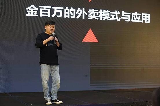 金百万董事长邓超先生就其自身外卖模式进行了全面分析,他讲到外卖成为餐饮新的增长引擎,这是一个亿万级别的市场,外卖有可能成为未来几年互联网行业最大的生意,互联网正在深刻改变消费者的消费习惯,随着外卖环境的改善,消费者体验的提升,局部城市将呈现二分天下的局面,传统餐饮“三重”和“四高一低”的特点越来越成为发展的阻碍,而外卖模式“两轻一重”的特点成为越来越多企业转型的动力,引导餐饮向着新零售的方向发展。外卖,从根本上改变了餐饮行业的成本结构和商业模式,更让商品的性价比走向最大化。金百万正式运用了外卖的模式整合外部资源,共同开发SKU,共享、共建良好外卖生态,让中国的外卖渗透率远超美、日的30%,占据中国餐饮的半壁江山。