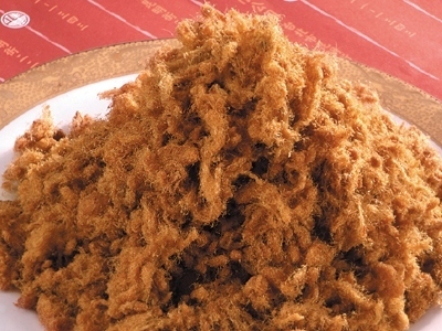 肉松或称肉绒,通常是用猪的瘦肉或鱼肉、鸡肉除去水分后而制成的,肉松是我国著名的特产,具有营养丰富,味美可口,携带方便等特点,在中国、日本、泰国、马来西亚、新加坡都很常见。一般的肉松都是磨成了末状物,适合儿童使用。将肉松拌进粥里或蘸镘头食用。